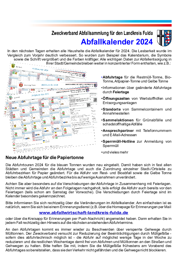 Neues zum Abfallkalender 2024 Gemeinde Ebersburg