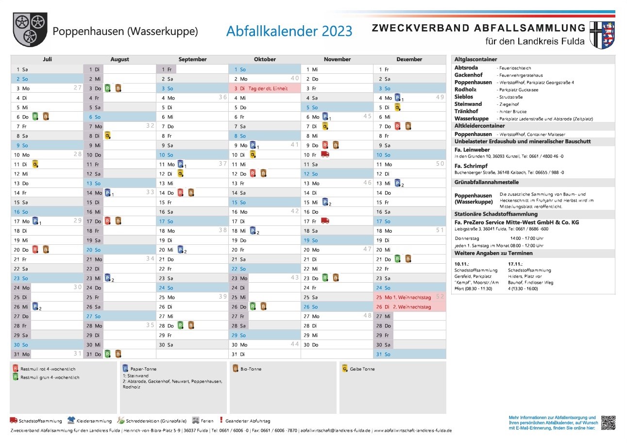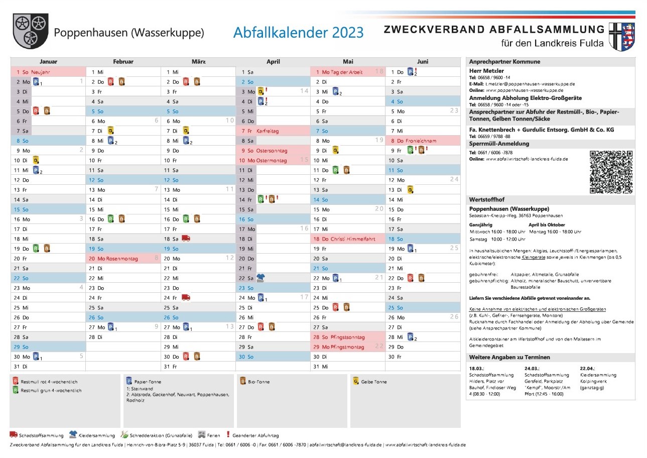 Abfallkalender Poppenhausen / Wasserkuppe (DE)