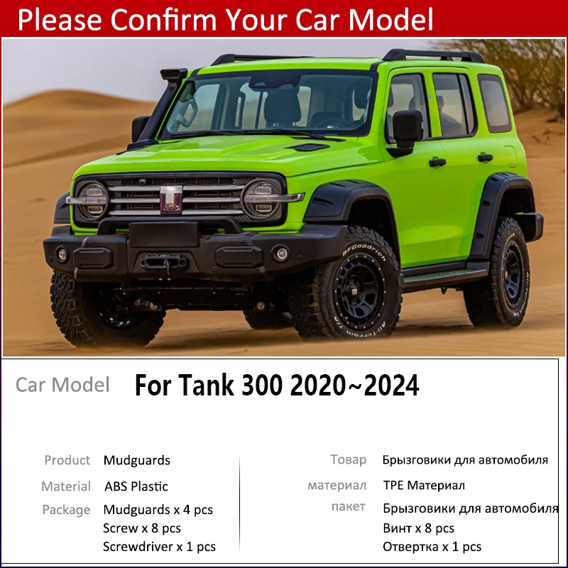 4pcs Car Mud Flaps for Tank 300 Accessories 2023 2022 2021 2020