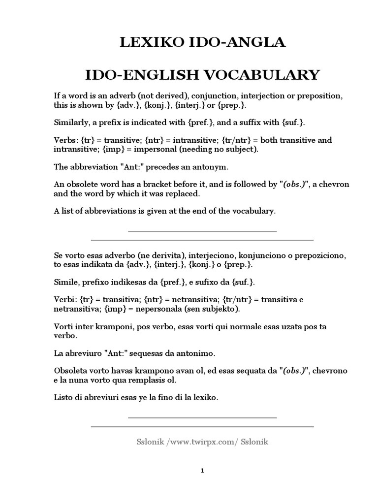 Lexiko Ido Angla Ido English | PDF | Stress (Linguistics) | Adverb